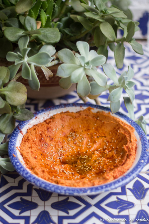 Esta versión diferente para hacer hummus casero te va a encantar. Los pimientos le aportan un sabor delicioso y podrás sorprender a tus invitados con uno de los aperitivos más populares y famosos.