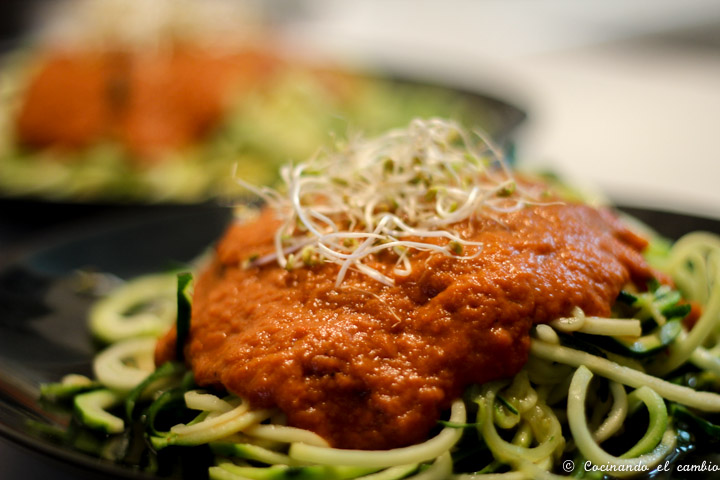 De primero te recomiento estos espaguetis de calabacín con salsa de tomate